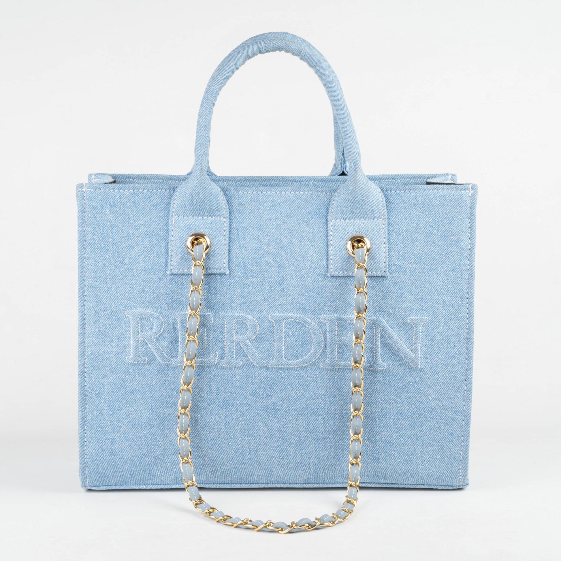 • Light powder blue denim with tone-on-tone RERDEN embroidery